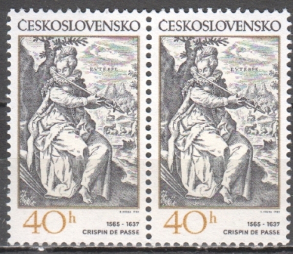 Mi.-Nr.: 2661 / Musik Motiven auf alten Stichen / Euterpe auf der Flöte spielend - Detail, Kupferstich aus dem Zyklus "Musen" von Crispin de Passe (1565 - 1637); niederländischer Kupferstecher Achtg! Einzelmarke aus Satz