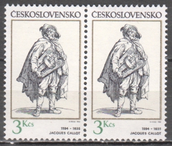 Mi.-Nr.: 2665 / Musik Motiven auf alten Stichen / Bettler mit Radleier - Radierung aus dem Zyklus "Bettler" von Jacques Callot (1592 - 1635); französischer Maler Achtg! Einzelmarke aus Satz