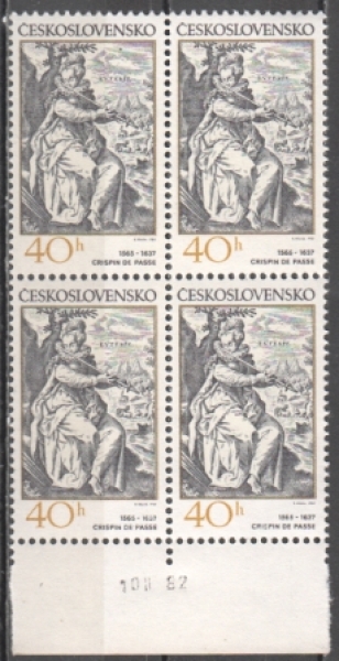 Mi.-Nr.: 2661 / Musik Motiven auf alten Stichen / Euterpe auf der Flöte spielend - Detail, Kupferstich aus dem Zyklus "Musen" von Crispin de Passe (1565 - 1637); niederländischer Kupferstecher