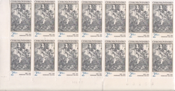 Mi.-Nr.: 2664 / Musik Motiven auf alten Stichen / Fahrenden Musikanten - Radierung von Rembrandt van Rijn (1606 - 1669); holändischer Maler gefaltet