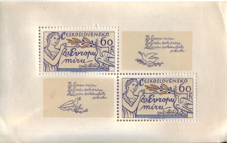 Mi.-Nr.: KLBG 2407 - 2409 gezähnt / Europa des Friedens und der Zusammenarbeit / Za Evropu míru, spolupráce a společenského pokroku Kleinbogen = 2 Briefmarken (gezähnt) + 2 Zierfelder (nur zweiseitig gezähnt)