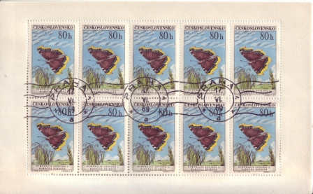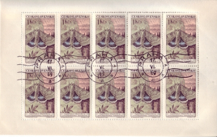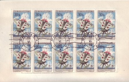 Kleinbogen = 10 Briefmarken - Satz beinhaltet die billigsten KLBG Varianten / Nachträglich entwertet mit Gefälligkeitstagesstempel mit Wellenstempel: "Praha 1 / 17. VI. 69" / mit Gummi