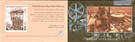 Technische Denkmäler: Dolní Vítkovice Briefmarke "B" / Markenheftchen ZSL 076 = 8 Marken + 4 gleiche ZF / Ersttagsstempel: "110 00 Praha 1 / 13.11. 24" Auflage: 13.000 Stück Maße: 135 x 85 bzw. 270 x 85 mm