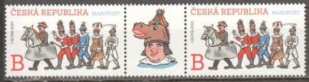 Mi.-Nr.: ???? / FASCHING / Masopust Marke + ZF (B = Pferd) + Marke / waagerecht