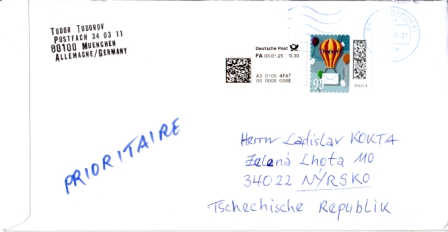 Brief nach Nýrsko / frankiert mit Bundesrepublik Deutschland Mi.-Nr.: ???? sh. Abbildung Tagesstempel: "Briefzentrum 81 / ??. ??. 25" - Rest unleserlich + Wellenstempel echt gelaufen - übliche Qualität Maße ca: 229 x 120 mm