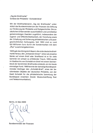 Philatelistisches Souvenir / Faltkarte - Sonderpostwertzeichen - Serie 2009 "Tag der Briefmarke"