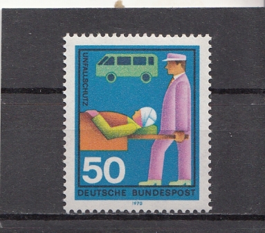 Frewillige Hilfsdienste / Hilfe nach Verkehrsunfall - Unfallschutz Achtg! Einzelmarke aus Satz!