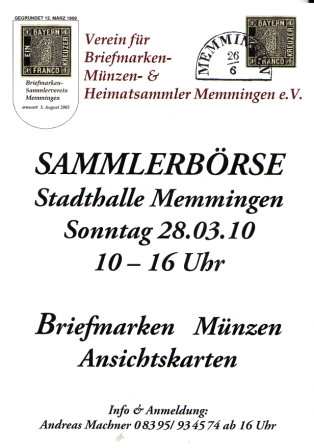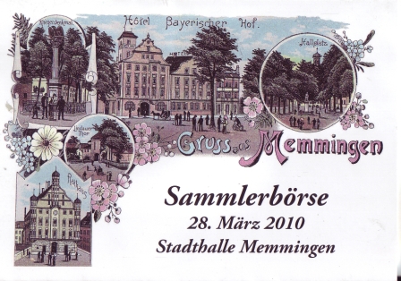 Philatelistisches Souvenir / Einladungskarte / Faltkarte / zur Sammlerbörse in Memmingen sh. Abbildung / herausgegeben durch Verein für Briefmarken - Münzen - Heimatsammler Memmingen e. V.