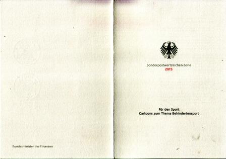 Philatelistisches Souvenir / Minister Faltkarte / mit Unterschrift (unleserlich) / Für den Sport - Cartoons zum Thema Behindertensport Mi.-Nr.: 3149 - 3151