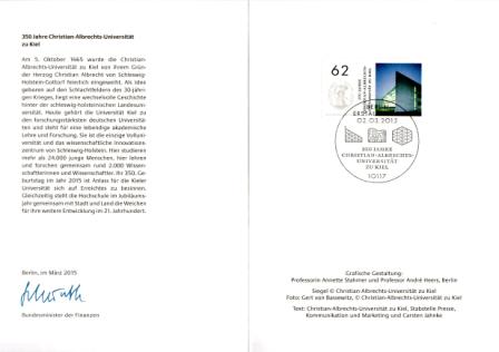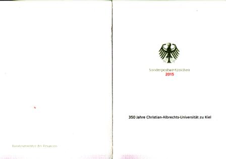 Ersttagsstempel / SOST: „Berlin / Erstausgabetag 02. 03. 2015 / 10117 / 350 Jahre Christian - Albrechts - Universität zu Kiel“