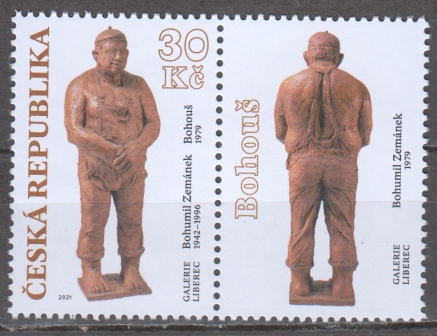 Mi.-Nr.: KLBG ???? / KUNSTWERKE AUF BRIEFMARKEN: BOHUMIL ZEMÁNEK / Umělecká díla na známkách: Bohumil Zemánek Marke + ZF (C = "Bohouš" von Hinten) rechts / waagerecht