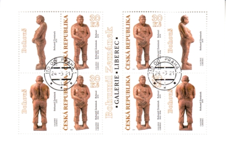 Mi.-Nr.: KLBG ???? / KUNSTWERKE AUF BRIEFMARKEN: BOHUMIL ZEMÁNEK / Umělecká díla na známkách: Bohumil Zemánek Kleinbogen = 4 Briefmarken + 3 verschiedene Zierfelder Ersttagsstempel: "110 00 Praha 1 / 24. 3. 21"