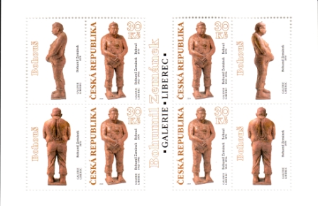 Mi.-Nr.: KLBG ???? / KUNSTWERKE AUF BRIEFMARKEN: BOHUMIL ZEMÁNEK / Umělecká díla na známkách: Bohumil Zemánek Kleinbogen = 4 Briefmarken + 3 verschiedene Zierfelder