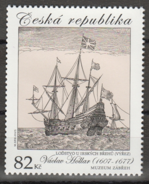 Mi.-Nr.: ???? / KUNST AUF BRIEFMARKEN: VÁCLAV HOLLAR - SCHIFFSSTICHE / Umělecká díla na známkách: Václav Hollar - rytiny lodí Einzelmarken aus Block POFIS-Nr.: A 1331
