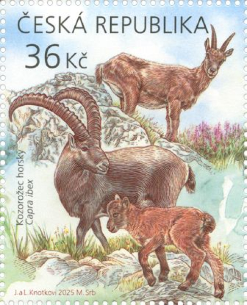 Mi.-Nr.: ???? / Europäische Tiere mit ihren Jungen - Evropská zvířata s jejich mláďaty / Steinbockziege - Steinbockziege Einzelmarke aus Block POFIS-Nr.: A 1324