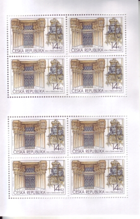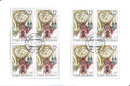 Mi.-Nr.: 669 - 670 / Sehenswürdigkeiten - 950 Jahre Eger / Portal und Figurenschmuck des kubistischen Hauses "zur schwarzen Madonna" in Prag Tages- Rundstempel