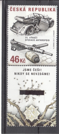 75. JAHRESTAG DER OPERATION ANTHROPOID Mi.-Nr.: 923 / Einzelmarken aus Block POFIS-Nr.: A 925 + ZF unten / geliefert als Block