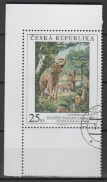 Mi.-Nr.: 452 / Gemälde aus nationalen Galerien / Deinotherium von Zdeněk Burian (1905 - 1981) Tages- Rundstempel / Einzelmarke aus Satz nach POFIS