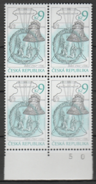 Mi.-Nr.: 444 / Technische Denkmäler - Glocken / Glocken aus Dobrš bei Stachy (1561 - 1596) Viererblock / Einzelmarke aus Satz nach POFIS