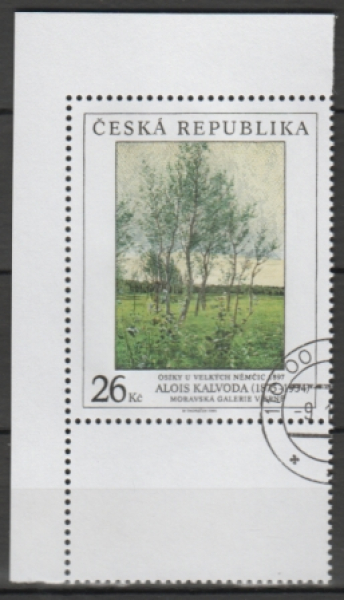 Mi.-Nr.: 453 / Gemälde aus nationalen Galerien / Zitterpappeln bei Velké Němčice von Alois Kalvoda (1875 - 1934) Tages- Rundstempel / Einzelmarke aus Satz nach POFIS