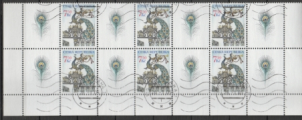 Mi.-Nr.: 423 / Freimarke - Tor mit Pfau Tages- Rundstempel + Wellenstempel / 6 Briefmarken + 8 Zierfelder