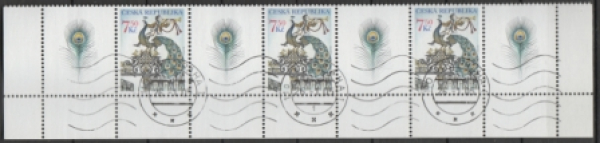 Mi.-Nr.: 423 / Freimarke - Tor mit Pfau Tages- Rundstempel + Wellenstempel