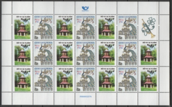 KLBG beinhaltet 9 Briefmarken, 1 offizielles Zierfeld (A) und 11 privat bedrucktem Zierfeldern (B) sh. Abbildung und Text: "Čínský pavilón"