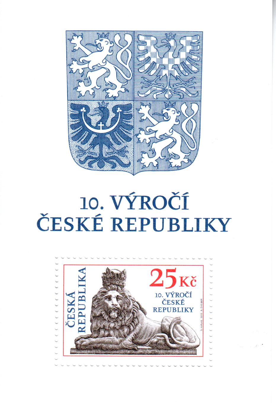 Mi.-Nr.: BL 18 C / 10 Jahre Tschechische Republik gez. K 11 ¾ - zoubkování RZ 11 ¾ / rozteč 45 mm