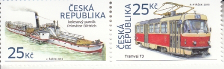 HISTORISCHE VERKEHRSMITTEL: Straßenbahn T3 + Raddampfer Primator Dittrich Mi.-Nr.: 0859 + 0860 / Paar / Raddampfer Primator Dittrich links + Straßenbahn T3 rechts - waagerecht