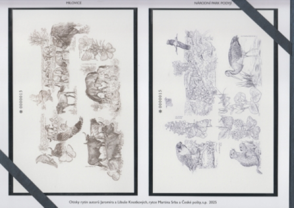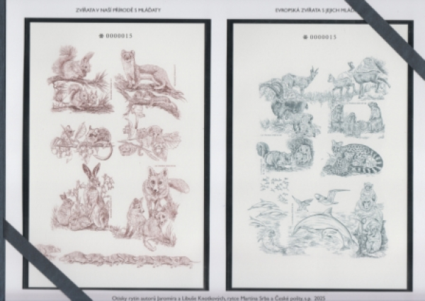 Die Česká pošta, s.p. bereitet zur heurigen Ausgabe von den Autoren Jaromír und Libuše Knotek und von dem Stecher Martin Srb eine Sonderausgabe eines speziellen Satzes von Gravurabdrücken für die Ausgaben von diesen Autoren aus den Sätzen: Naturschutz (2x) und Tiere mit Jungen (2x) vor, einen speziellen Sonderdruck aus den 4 Blöcken aus den Serien aus den Jahren: