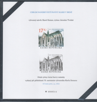 Dieser Satz besteht aus einem Gedenk-Sonderdruck mit Abdruck der Gravur der Briefmarke aus der Ausgabe zu der Europäischen - Ausstellung Brünn 2005: „Die Kirche Mariä Himmelfahrt in Brünn“ aus dem Jahre 2004, und aus einem Gedenkblatt zum Geburtstag des Stechers. Der Gedenk-Sonderdruck mit dem Abdruck der Gravur von J. Tvrdoň, in schwarzer Farbe, der mit der Stahldruckmaschine WAITE angefertigt wurde, wird mit einer farbigen Reproduktion der Briefmarke und mit einem Begleittext ergänzt, und im unteren Teil nummeriert. Das Gedenkblatt mit der aufgeklebten Briefmarke, mit dem Stempel „Známková tvorba, Praha 7.12.2024“, wird gleich nummeriert, und mit einem Hologramm ergänzt